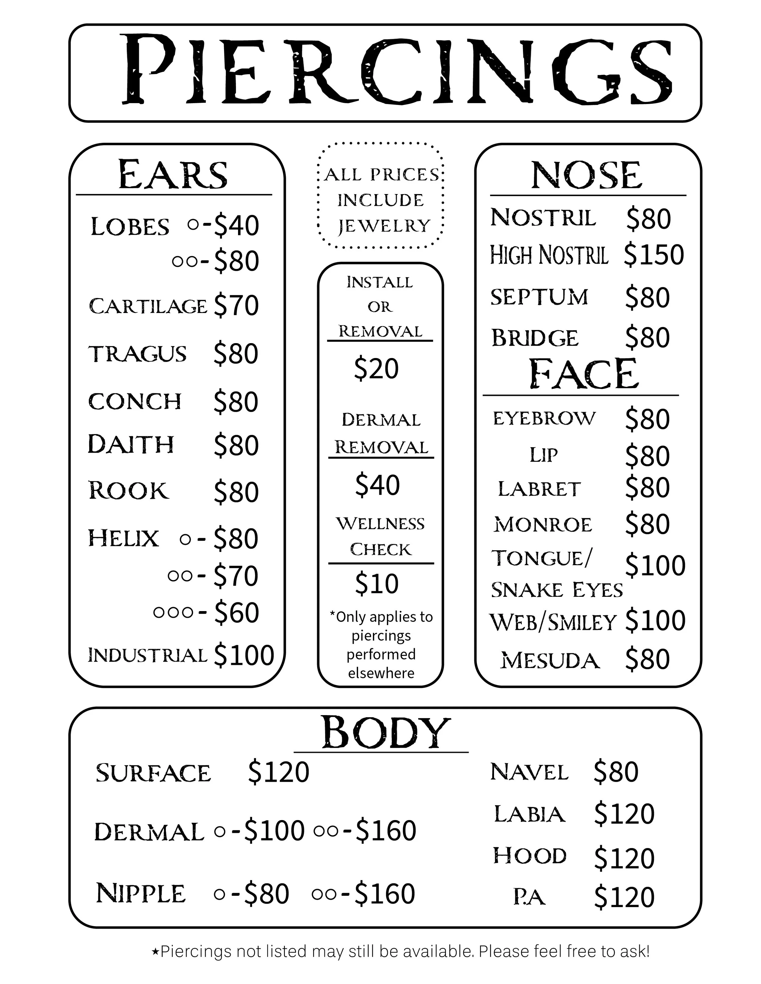 Walk ins only for piercings!